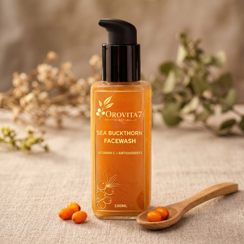 Refresh and revive your skin with Orovita7 Sea Buckthorn Facewash, a gentle, sulfate-free formula enriched with the natural goodness of sea buckthorn — known for its high content of Vitamin C, antioxidants, and skin-nourishing nutrients.